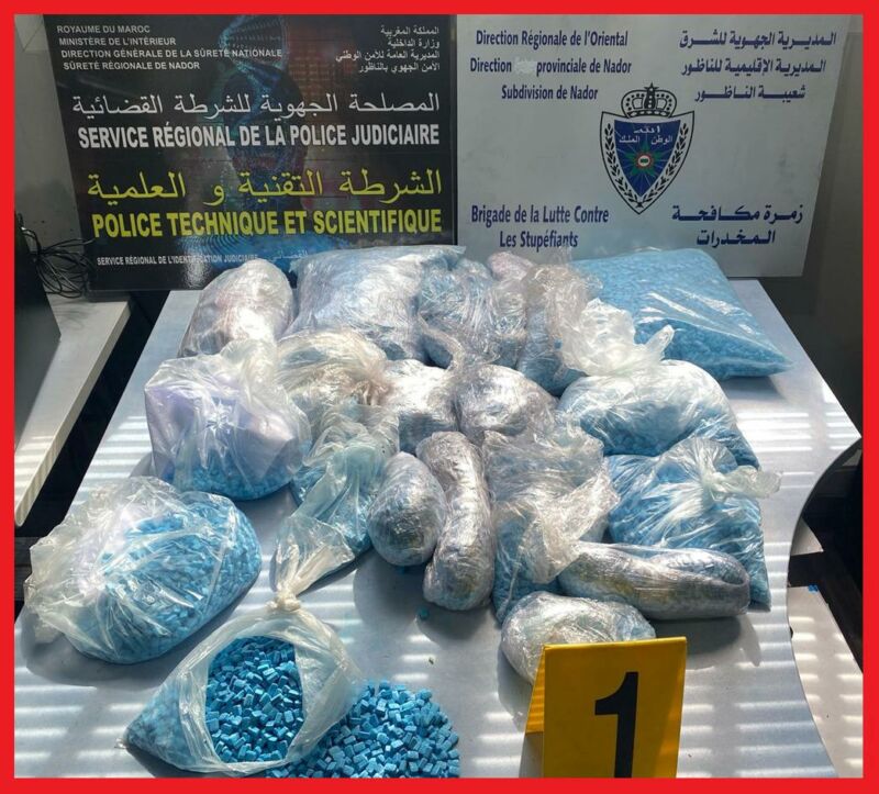 تمكنت عملية أمنية مشتركة بين مصالح الأمن الوطني والجمارك بميناء ميناء بني أنصار بإقليم الناظور من إحباط محاولة لتهريب 7486 قرصًا مخدرًا، وتوقيف شخص يُشتبه في ارتباطه بشبكة تنشط في الترويج الدولي لهذه المواد.