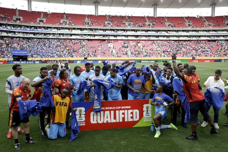 حجز منتخب جمهورية الكونغو الديمقراطية مقعده في نهائيات كأس العالم لأول مرة منذ 1974، عقب فوزه على جامايكا بهدف دون رد بعد التمديد، في مباراة الملحق التي أقيمت بالمكسيك.