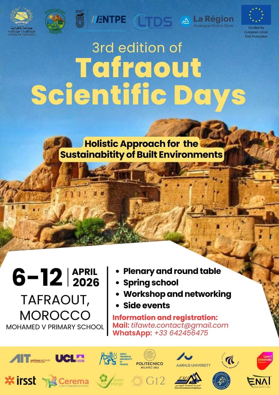 تستعد مدينة تافراوت لاحتضان الدورة الثالثة من الأيام العلمية، التي تنظمها المدرسة الوطنية للأشغال العمومية للدولة، بشراكة مع جمعية “تيفاوت”، وذلك في إطار تعزيز الدينامية العلمية والأكاديمية والانفتاح على القضايا البحثية ذات الصلة بالتنمية المستدامة. ويواكب هذه التظاهرة الإعلان عن تنظيم المدرسة الربيعية، في خطوة تروم ترسيخ تقاليد علمية منتظمة بالمنطقة وربط البحث الأكاديمي بالإكراهات المجالية.