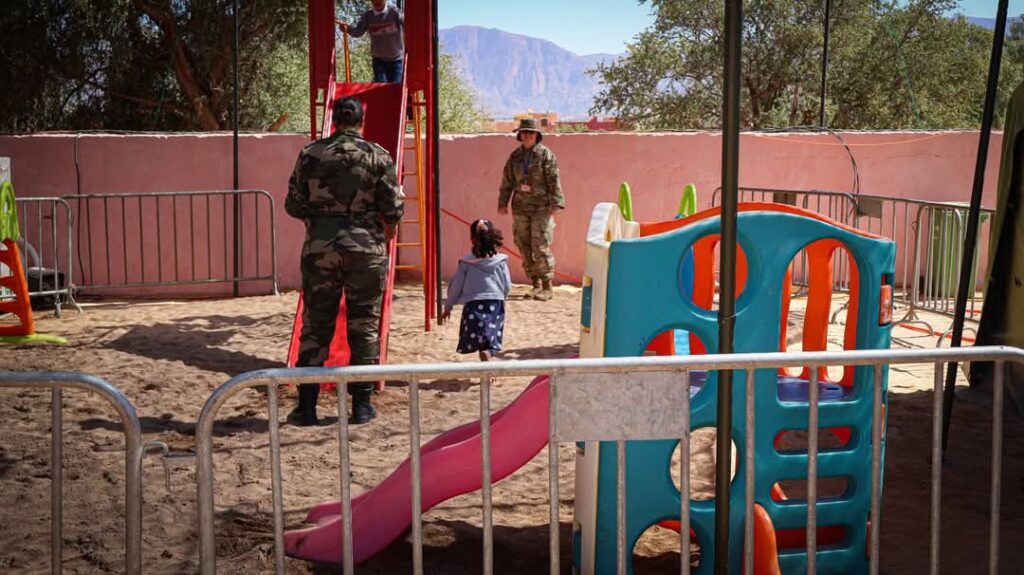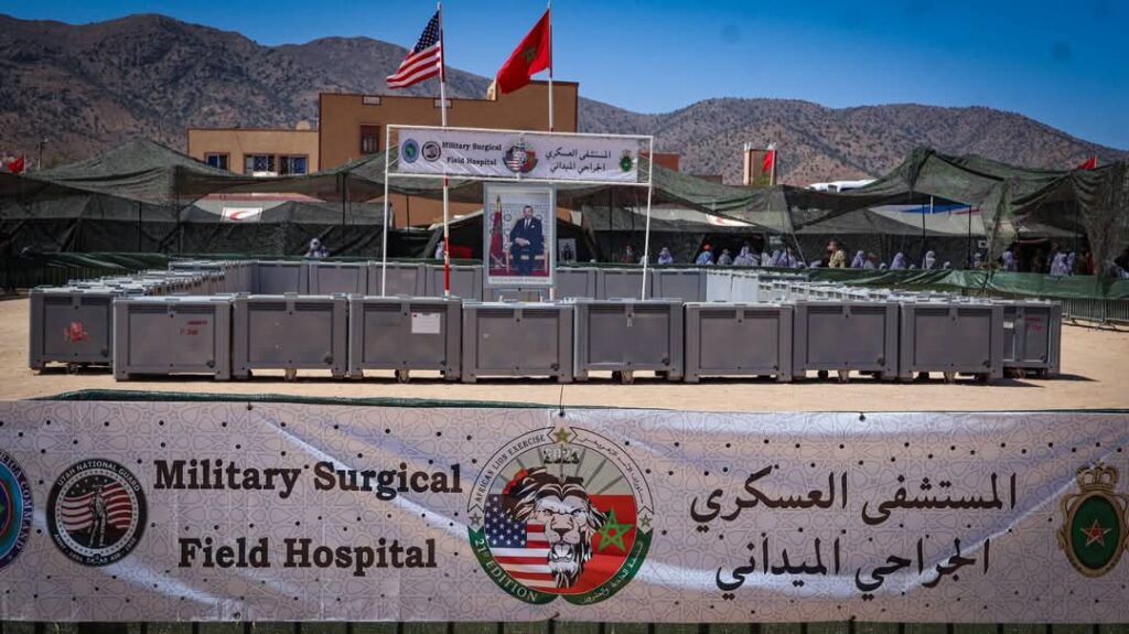 في سياق الأنشطة الإنسانية الموازية للمناورات العسكرية المغربية الأمريكية المشتركة “الأسد الإفريقي 2025″، والتي تُنظم بناءً على التعليمات السامية لصاحب الجلالة الملك محمد السادس نصره الله، القائد الأعلى ورئيس أركان الحرب العامة للقوات المسلحة الملكية، تم إحداث مستشفى عسكري جراحي ميداني على مستوى جماعة أنزي بإقليم تيزنيت.
