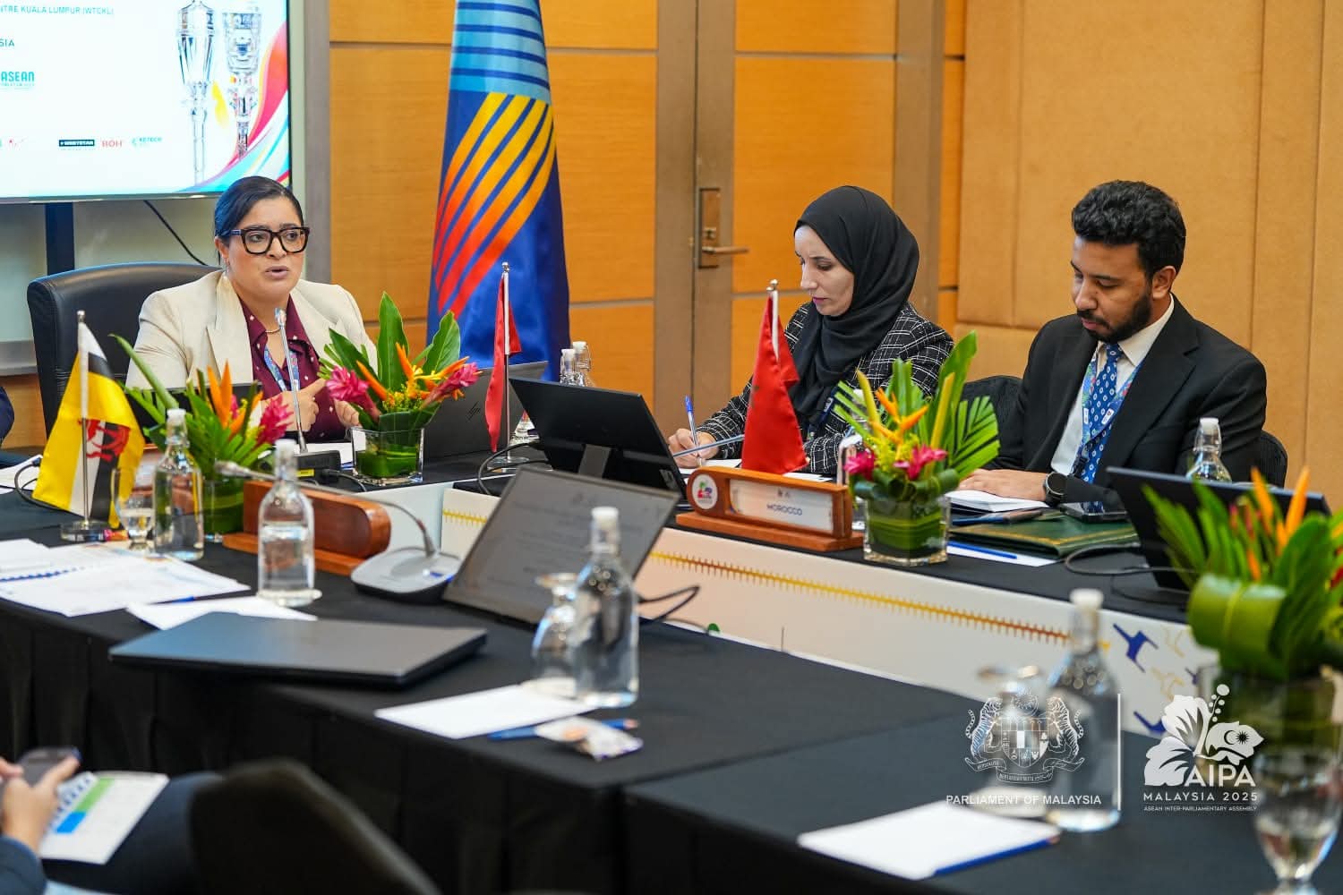 وفي كلمتها خلال الجلسة العامة، شددت على أهمية التعاون الاقتصادي الإقليمي والتكامل بين دول جنوب شرق آسيا لمواجهة التحديات الاقتصادية والبيئية، مبرزة دور البرلمانات في المصادقة على الاتفاقيات التجارية وتعزيز الاستقرار والنمو الشامل. كما تناولت، خلال الحوار البرلماني، التجربة المغربية في مجالات الطاقة المتجددة، الأمن الغذائي، التحول الرقمي، وتمكين الشباب، مؤكدة أن المغرب يسعى، بفضل موقعه الاستراتيجي كبوابة لإفريقيا، إلى تطوير شراكات ثلاثية بين المغرب ودول الآسيان وإفريقيا.