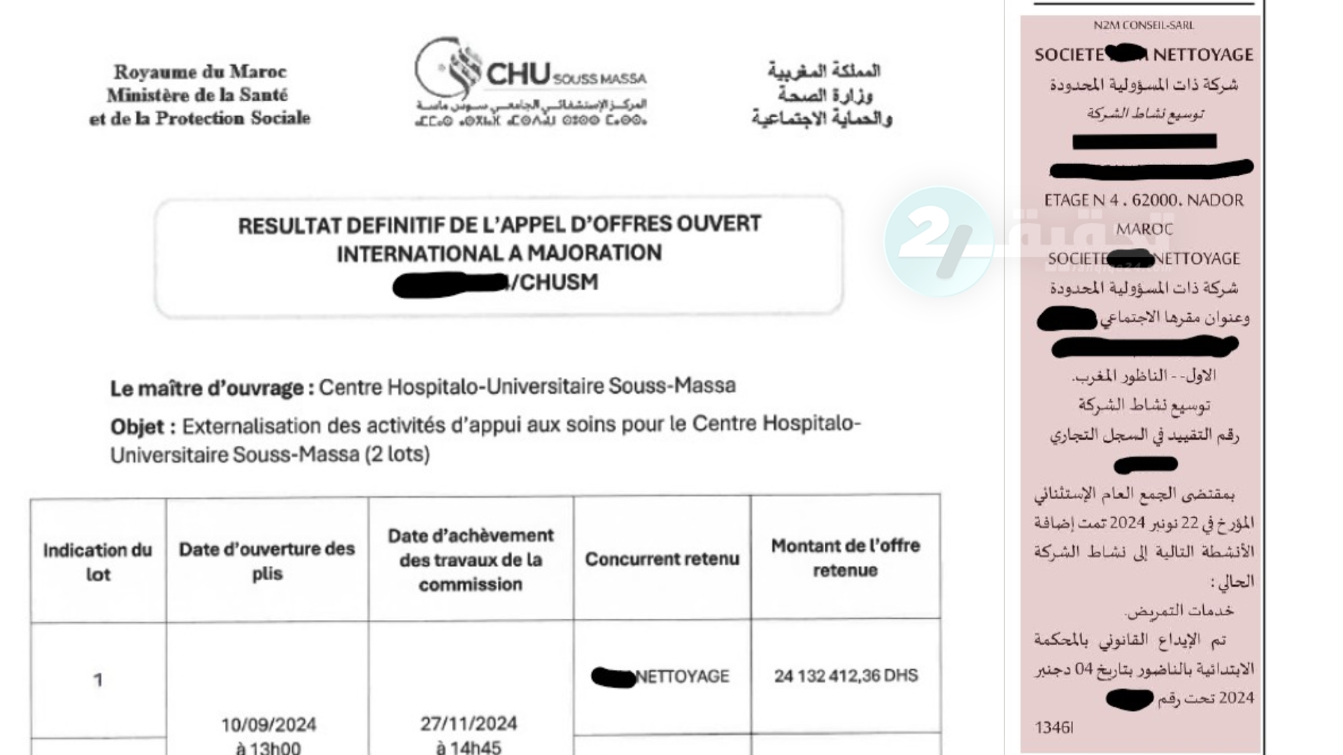 وتزداد حدة التساؤلات بالنظر إلى المعطى الزمني المرتبط بتعديل السجل التجاري للشركة المعنية، حيث تشير المعطيات إلى أن إضافة نشاط التمريض لم تتم إلا بعد الإعلان عن فوزها بالصفقة، وتحديدًا في الرابع من دجنبر 2024.