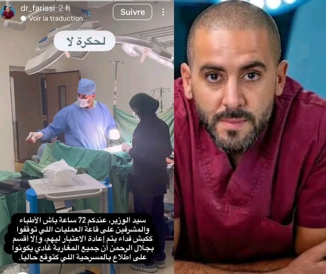 وكانت تصريحات فاريسي قد أثارت تفاعلات واسعة داخل الأوساط الطبية والإعلامية، بعد انتقاده لما اعتبره “إجراءات غير عادلة” في حق زملائه الموقوفين، مطالباً بتصحيح الوضع وحماية الكفاءات الصحية العاملة في مستشفى الحسن الثاني بأكادير.